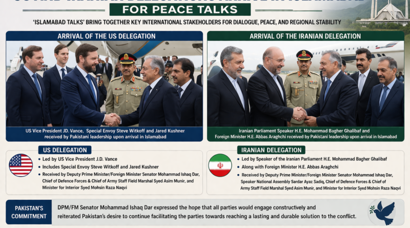 US and Iranian Delegations Arrive in Islamabad for Peace Talks High-level delegations from the United States and the Islamic Republic